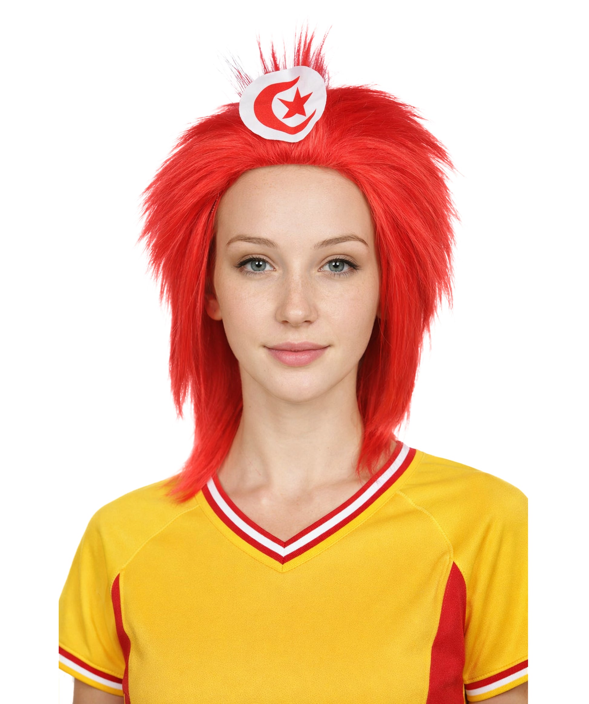 Tunisia Flag 80's Mullet Red and White Wig